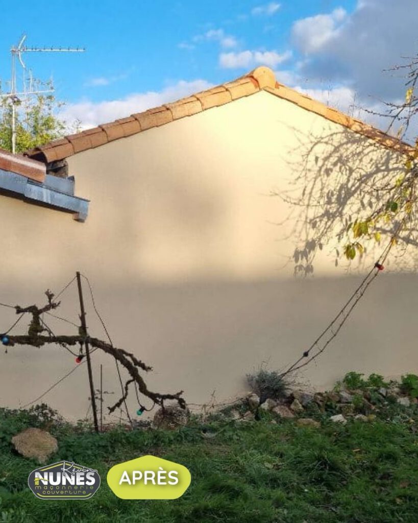 Cette intervention a permis d’améliorer significativement l’esthétique de la façade, en offrant un rendu propre, homogène et moderne. Au-delà de l’aspect visuel, ce travail de rénovation en maçonnerie renforce la protection des murs extérieurs, en assurant une meilleure étanchéité et une résistance accrue face aux conditions climatiques, contribuant ainsi à la longévité de l’habitation.